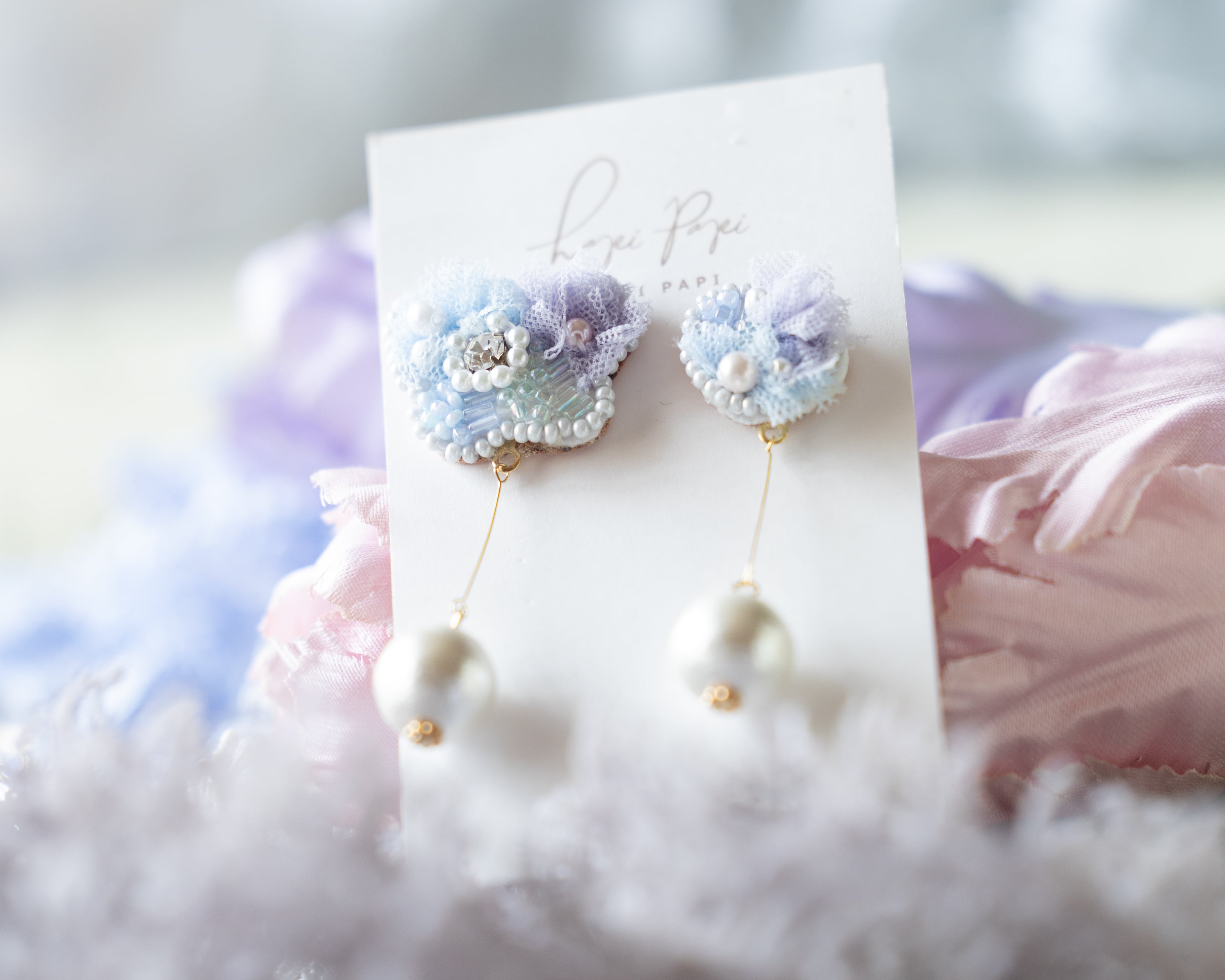夢見る蝶々のピアス|コットンパール揺れるデザイン