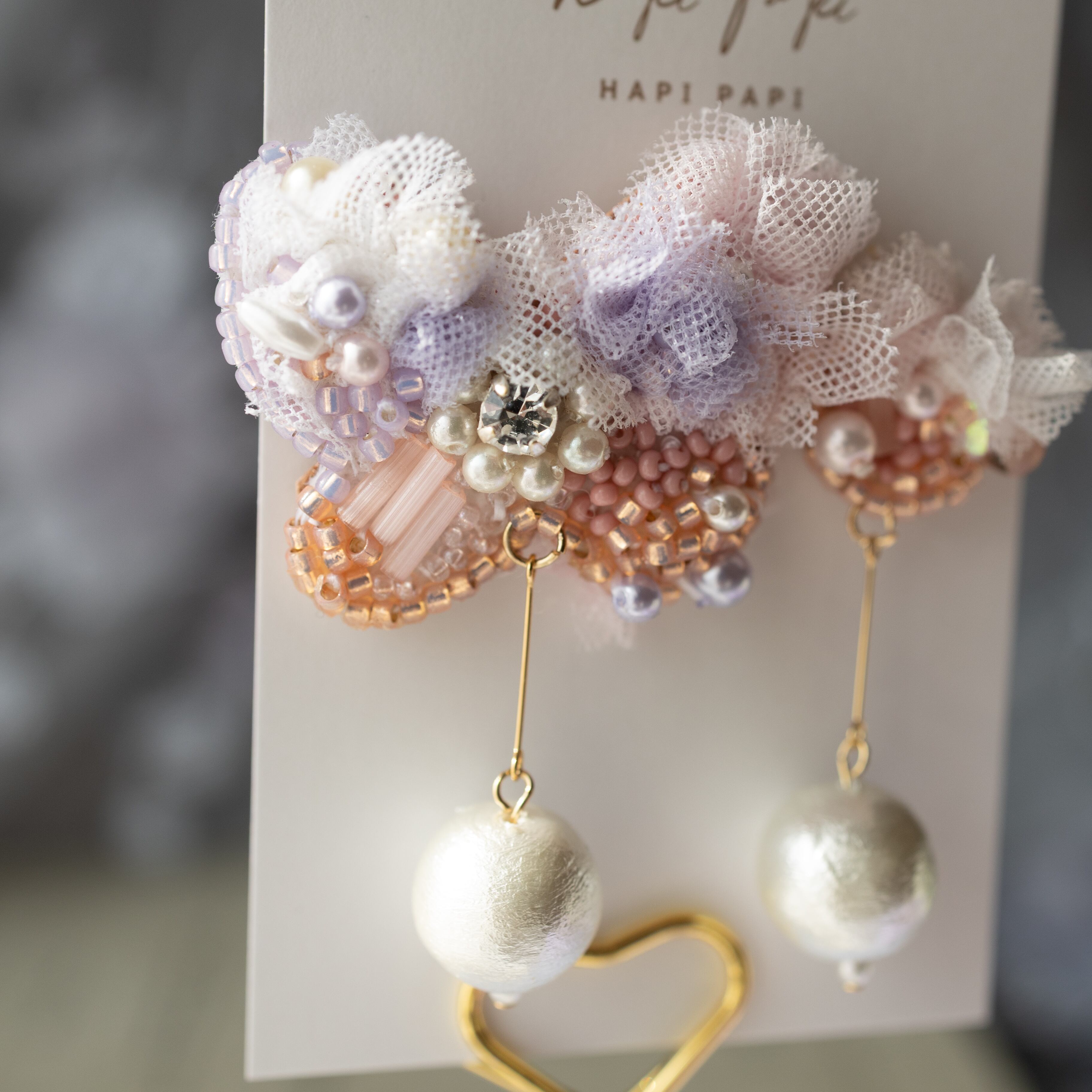 夢見る蝶々のピアス|コットンパール揺れるデザイン