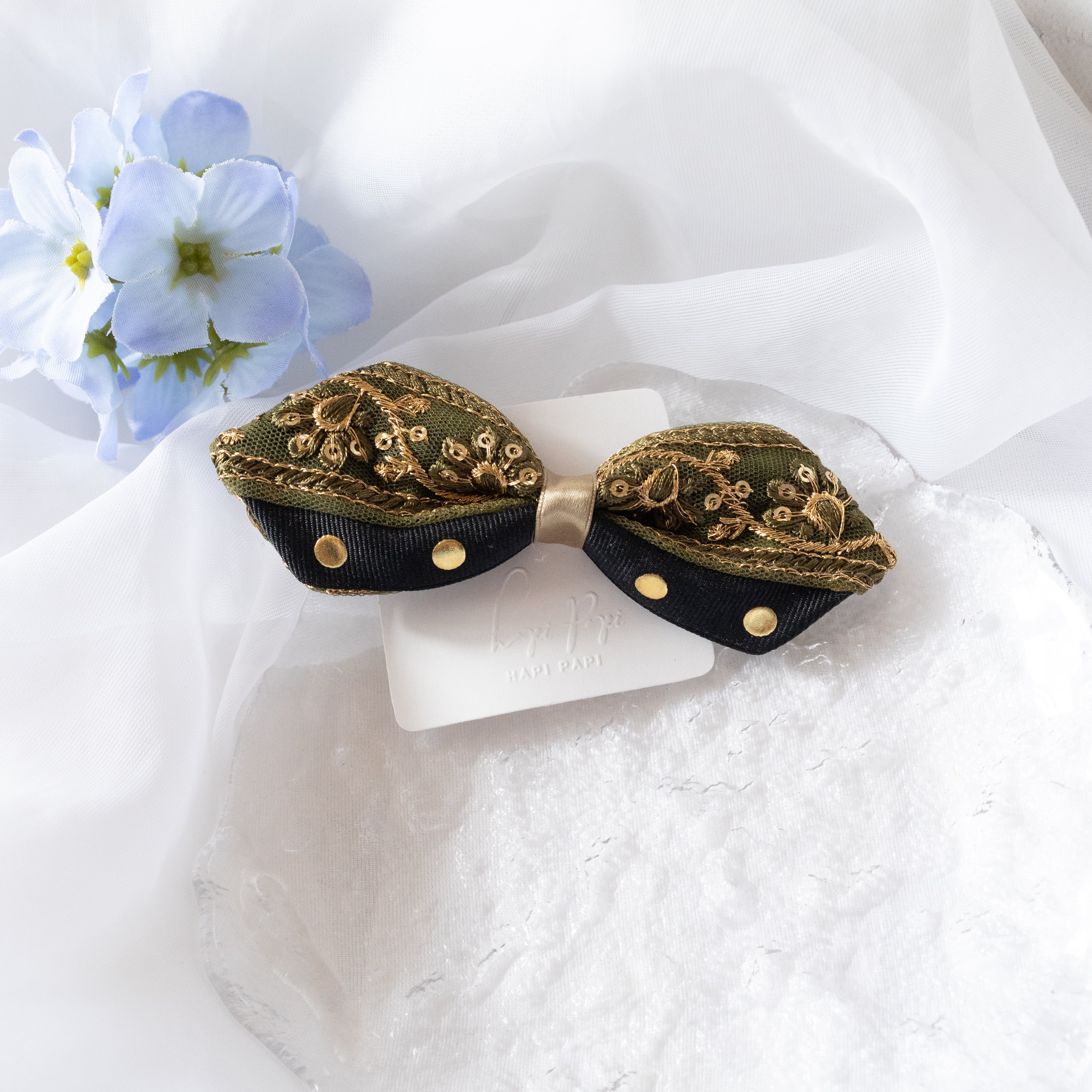 │蝶ネクタイ│ mix/カーキ&ブラック│ 家族で使えるマルチクリップ│ヘアクリップ│卒園卒業入園入学